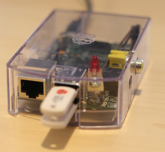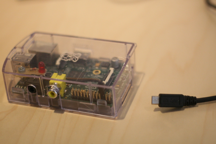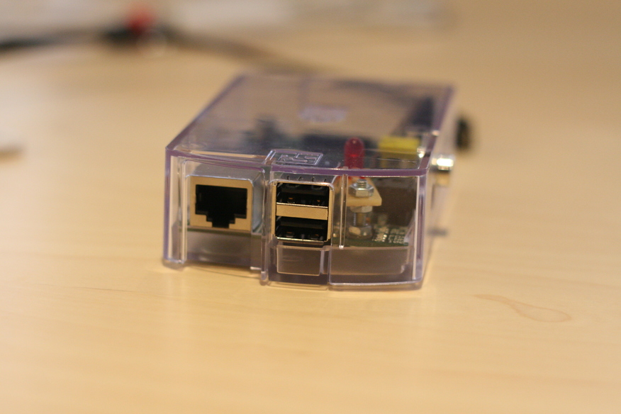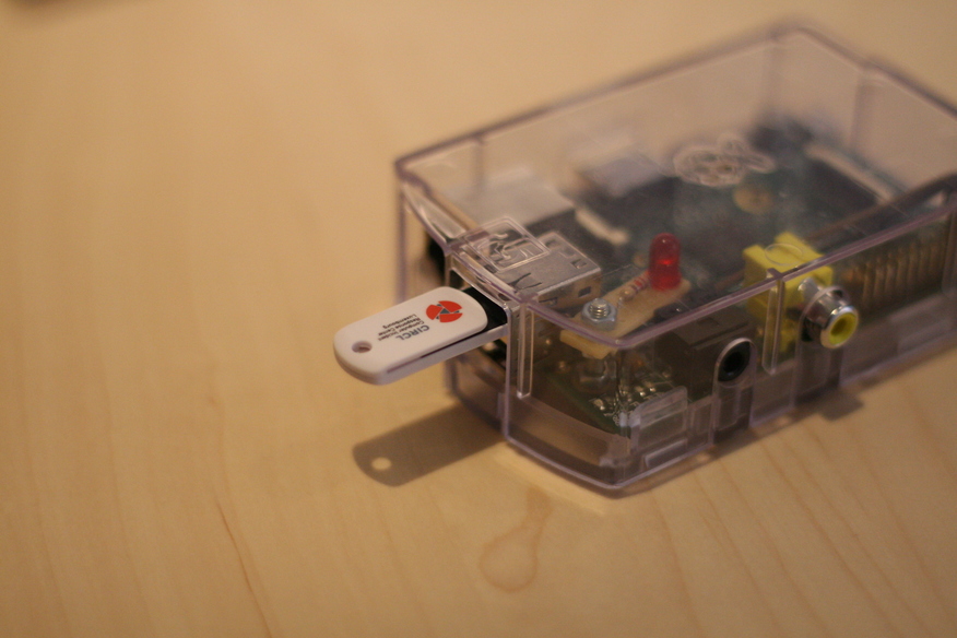 Plug the untrusted key in the top usb slot of the Raspberry Pi: